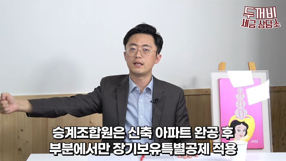 입주권이 준공이 돼서 신축 아파트를 취득하는 조합원, 즉 승계조합원의 경우 신축 아파트 완공 후의 부분에 대해서만 장기보유특별공제를 적용받을 수 있습니다.