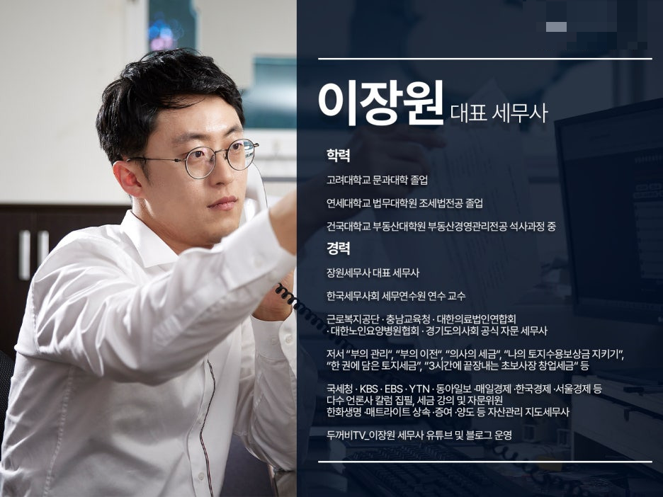 두꺼비 세금 상담소의 세무법인 리치 이장원 대표 세무사입니다.